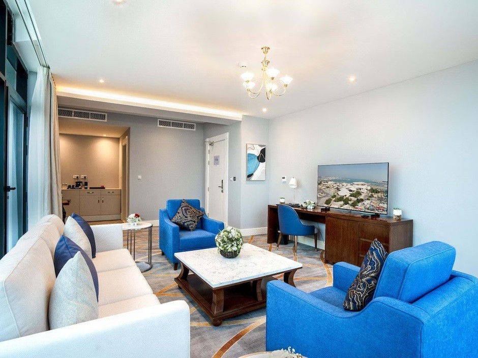 Murwab Suite: 68 кв. м., балкон, вид на море, спальня, гостиная с обеденной зоной и кухней (электрическая плита, микроволновая печь), ванная комната с душем, доп.кровать (по запросу), сейф, мини-бар,