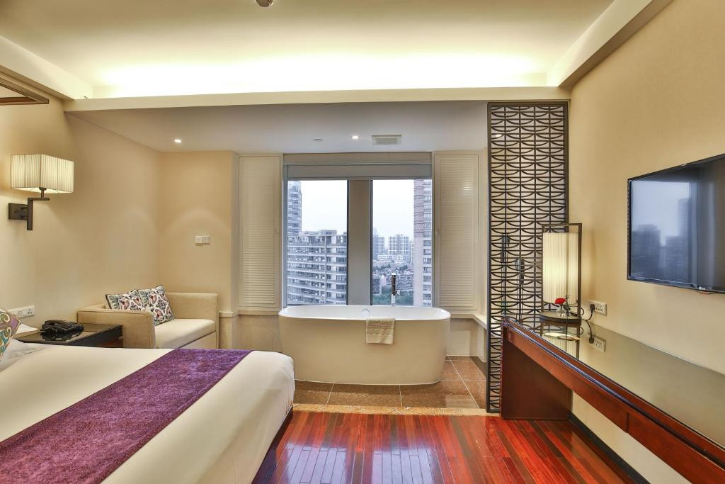 Executive Suite — 50 кв. м, в номере с видом на город одна двуспальная кровать и диван в гостиной. Число гостей — до 3 человек,