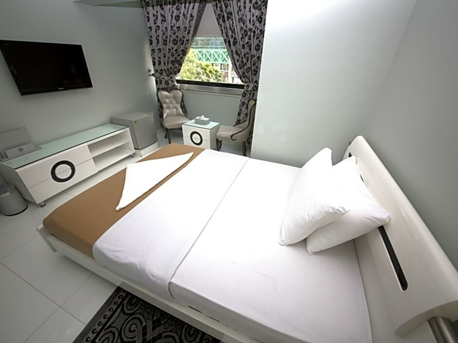 Deluxe studio skyline view apartment with sofa bed: 68 кв. м, спальня, кровать King-size, диван-кровать, кухня, ванная комната, душ, балкон, вид на пляж и горизонт,