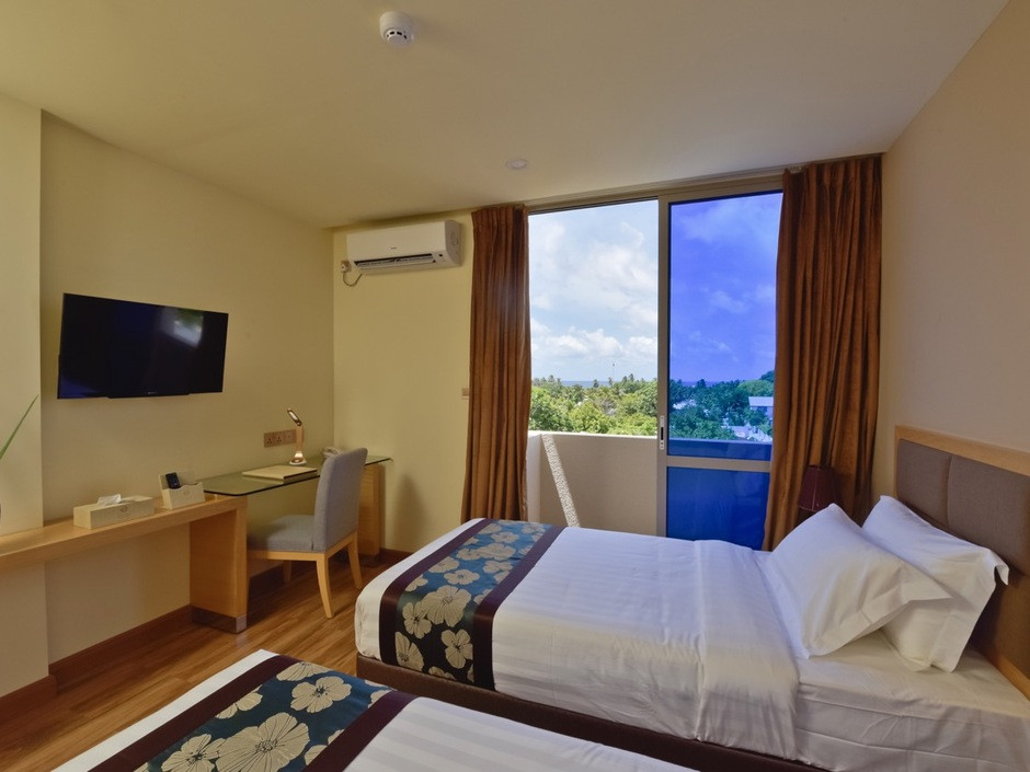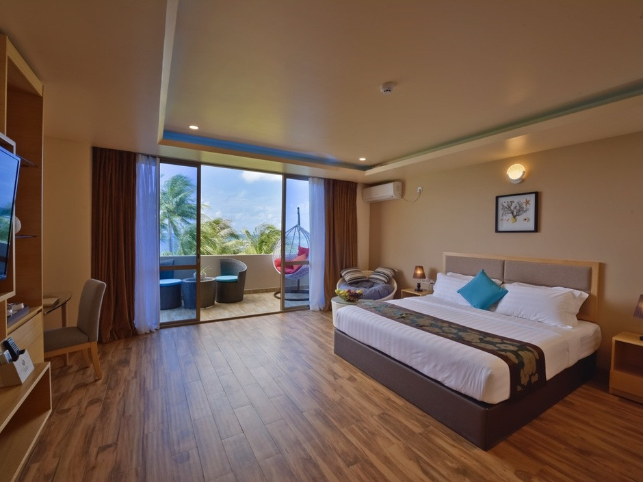 Deluxe Room (максимальное размещение — 3 взрослых). Номер с собственным балконом, двуспальной кроватью или двумя односпальными кроватями. Из некоторых номеров виден океан,