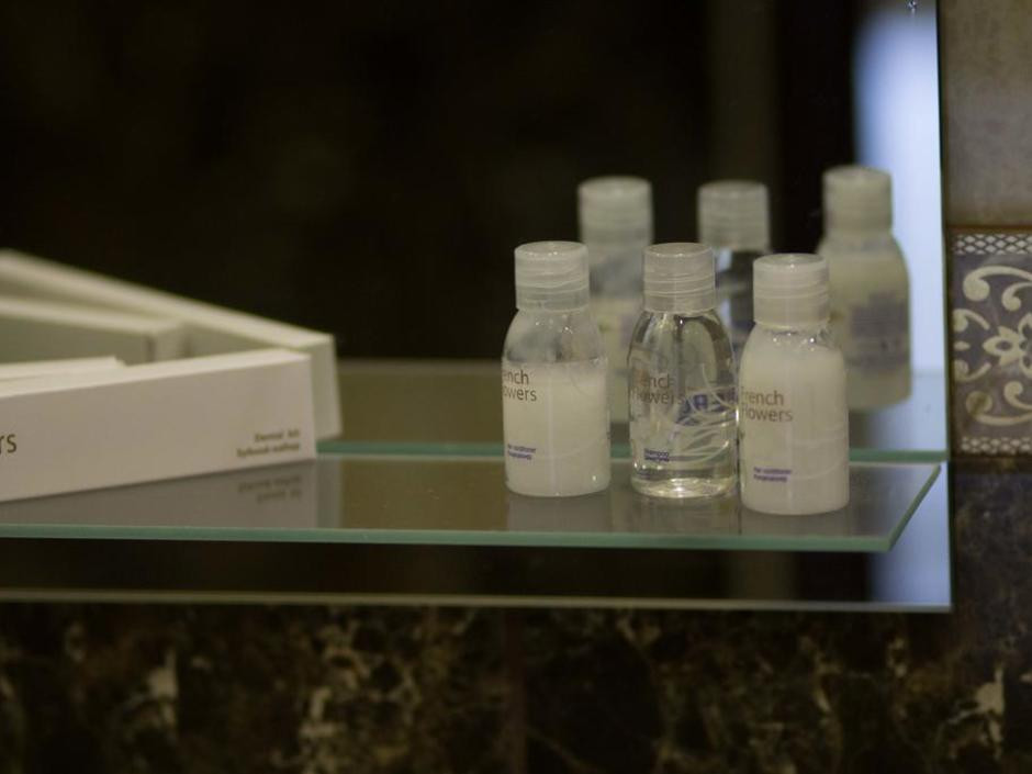 комплект одноразовых туалетных принадлежностей: тапочки, зубной набор, мыло, гель для душа, шампунь-кондиционер