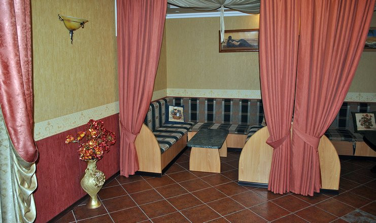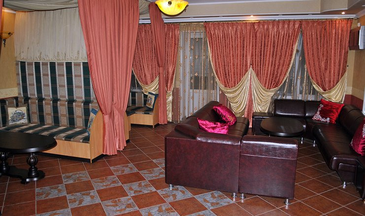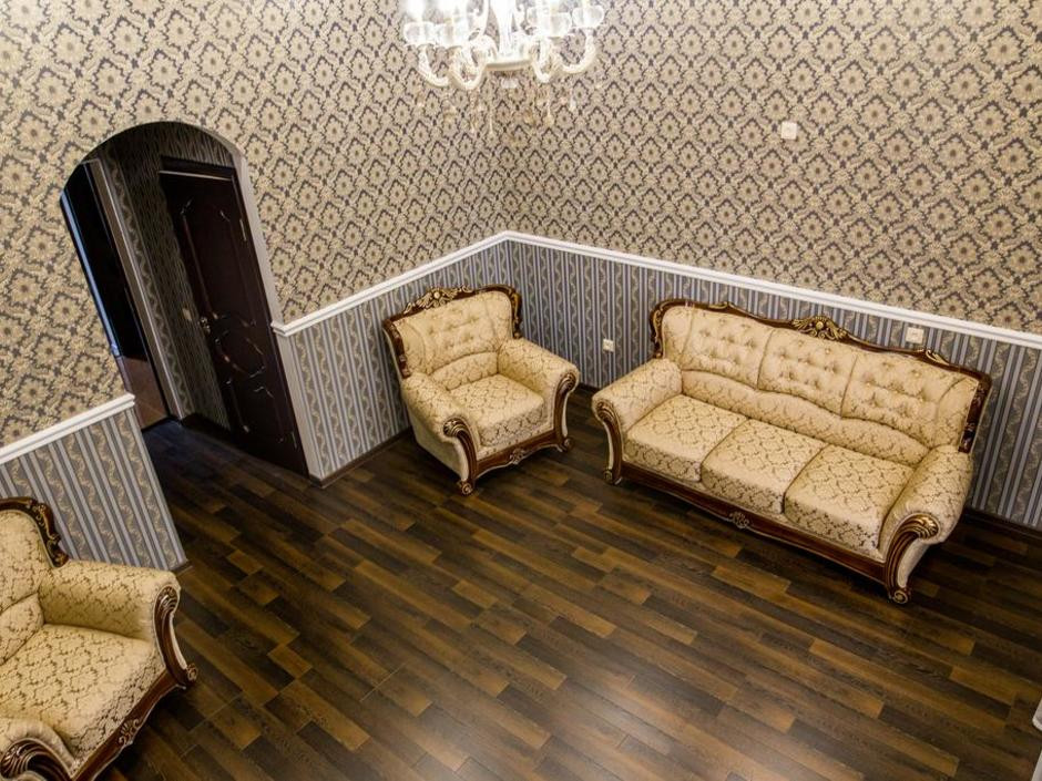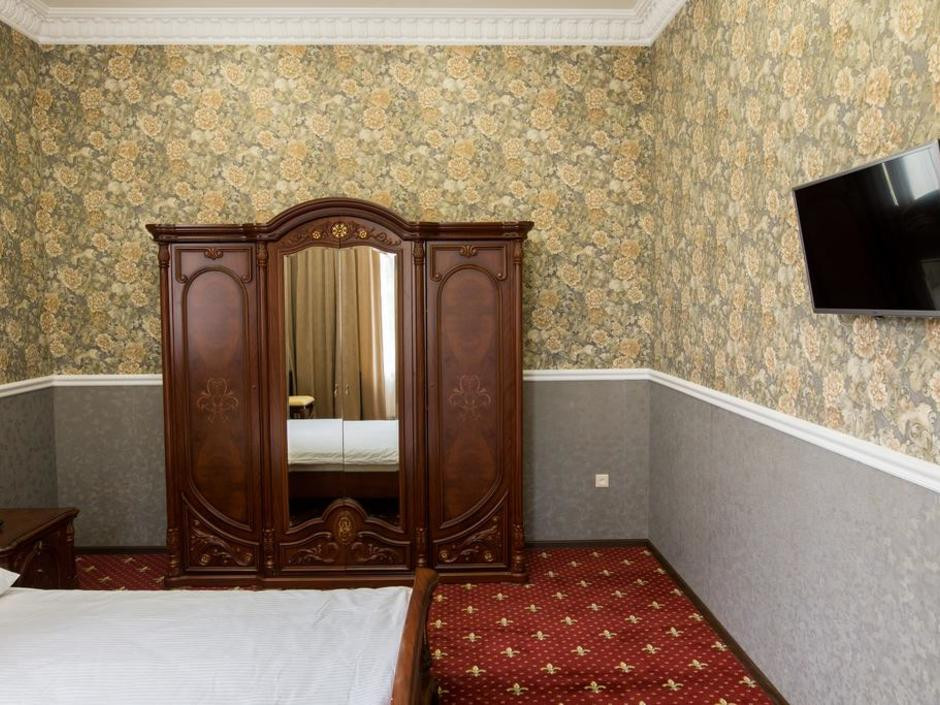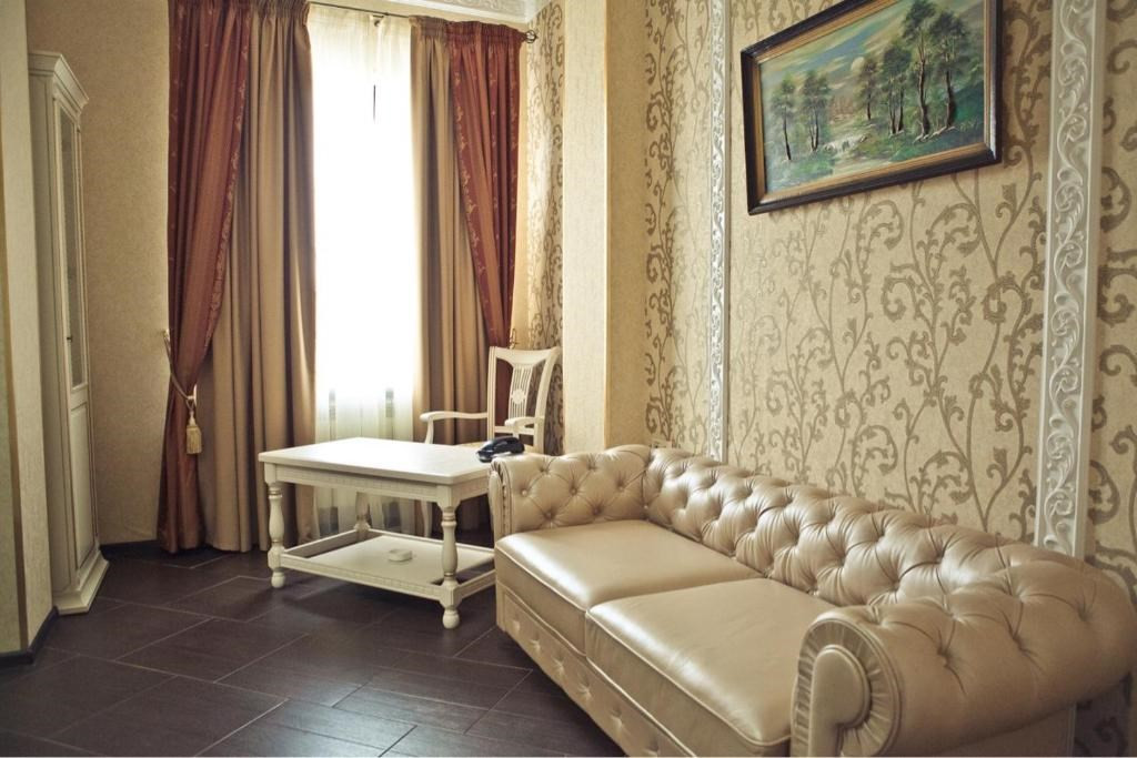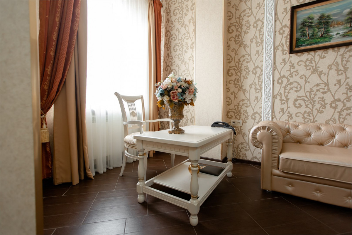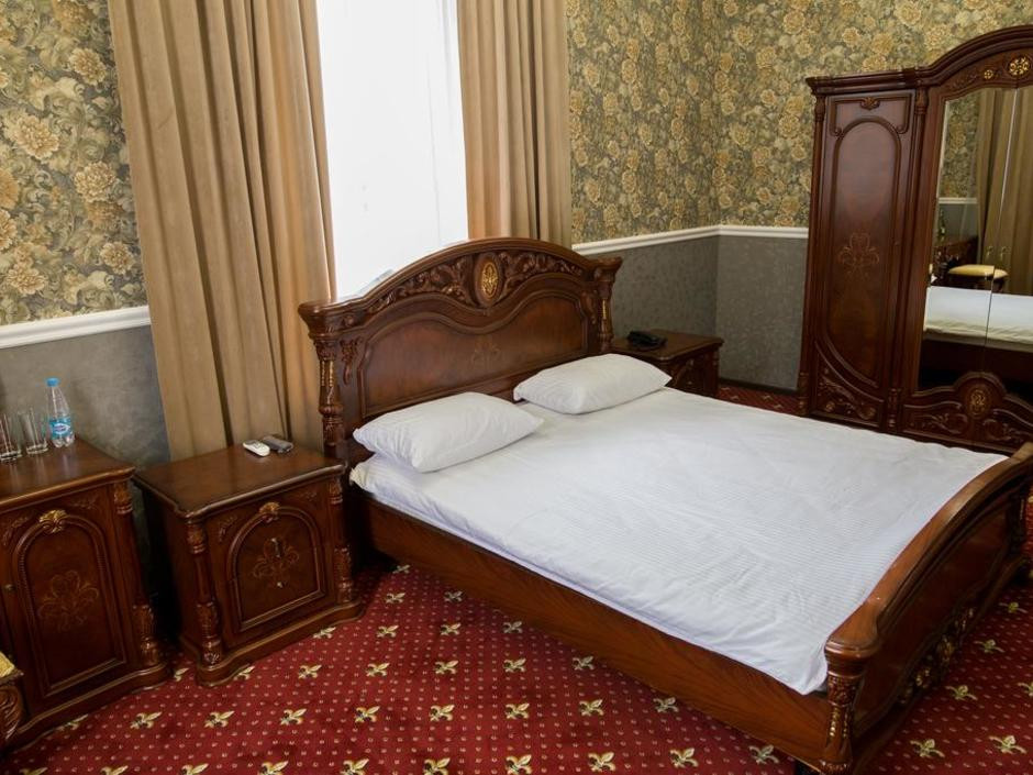Люкс: 15 кв. м. Вид из номера: на город. Количество комнат: 1. Тип кроватей (основные места): двуспальная. 2 этаж. Дополнительное место: 2-спальный диван,