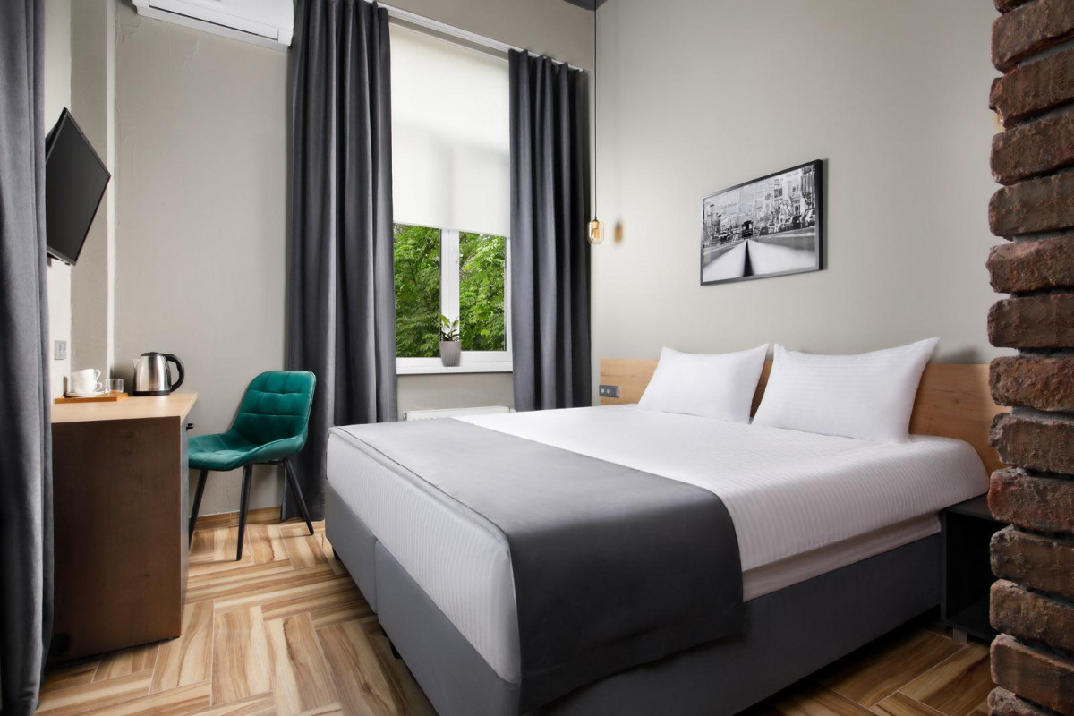 Стандарт+: 16 кв м, раздельные кровати, двуспальная кровать, вид на город. 1 комната, этаж 1 и 2,
