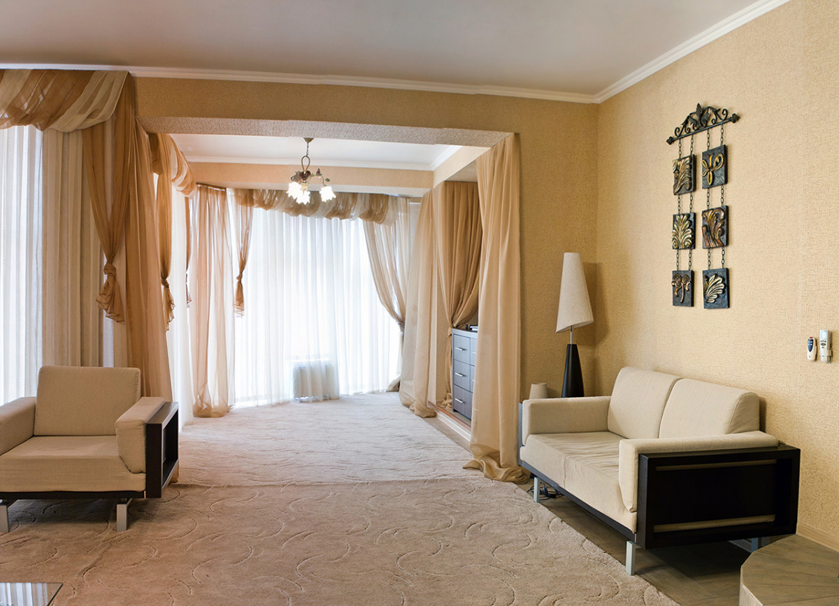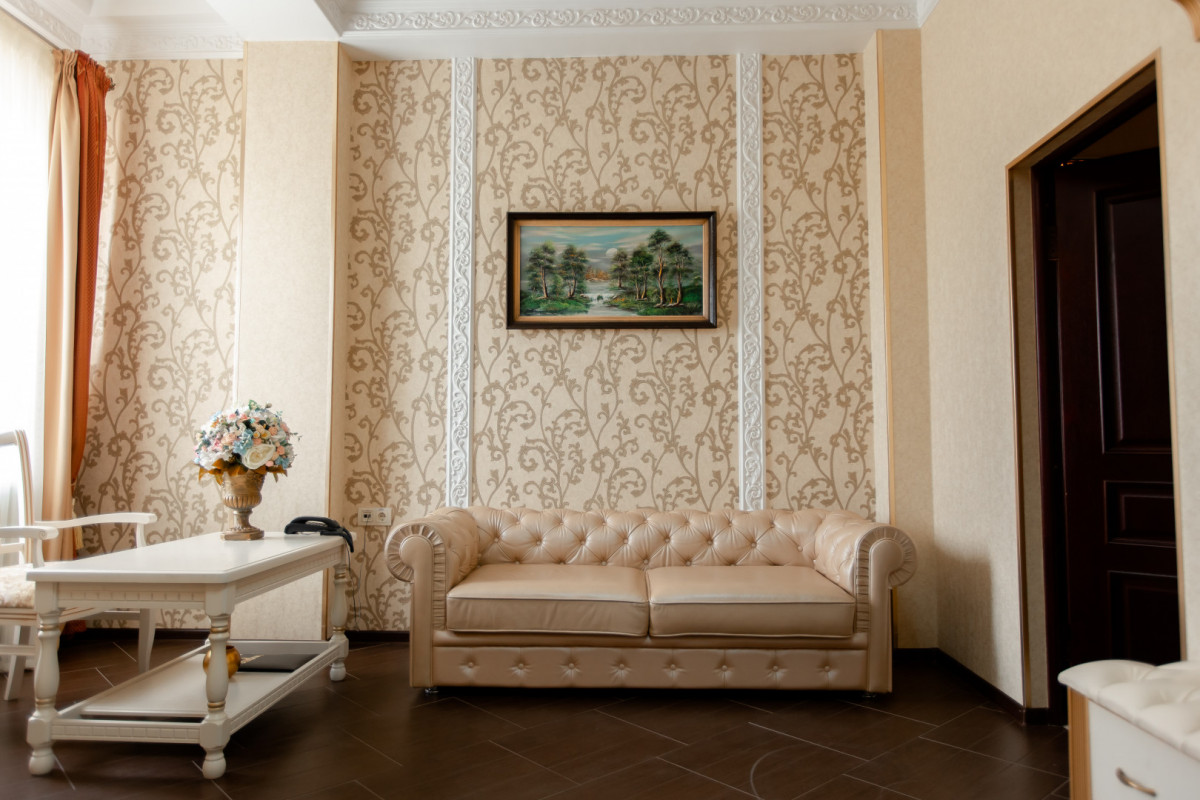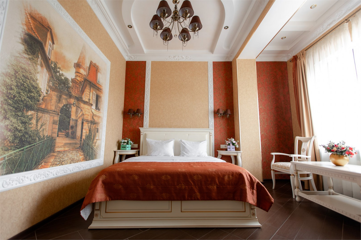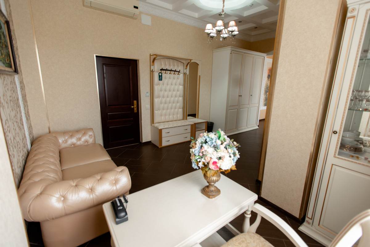 Люкс 2-комнатный: 50 кв м, спальня с широкой двуспальной кроватью, гостиная с раскладным диваном,