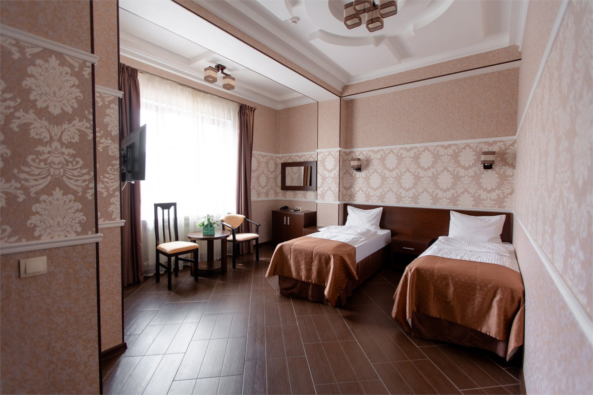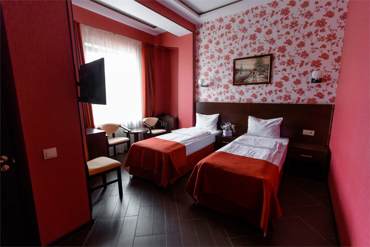 ,Стандарт: 12 кв м, полуторные кровати, вид город. 1 комната, этаж 1 и 2,