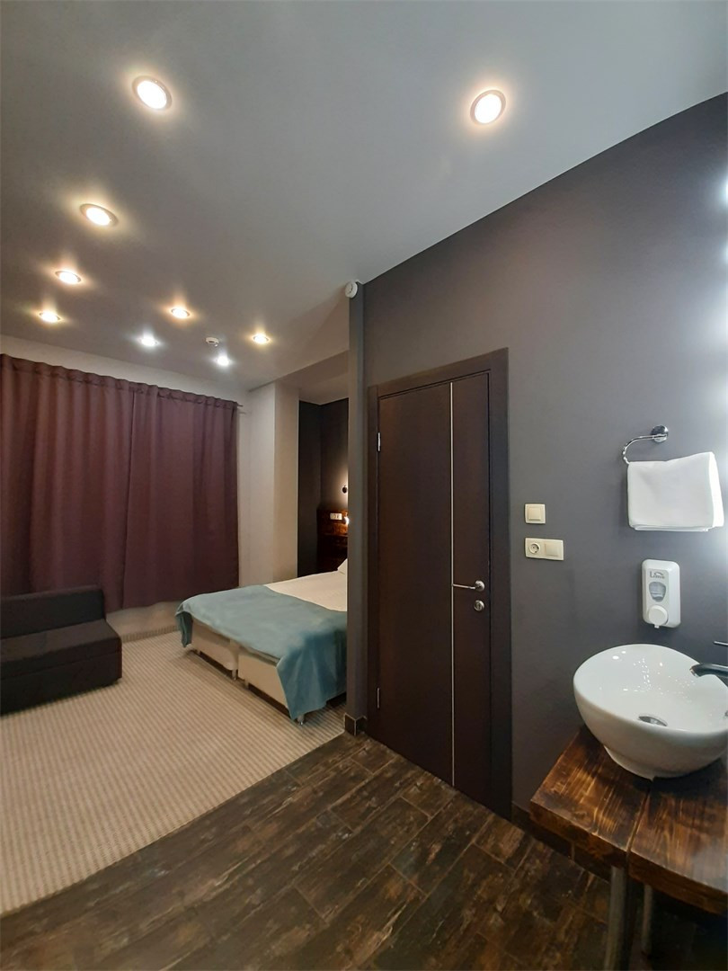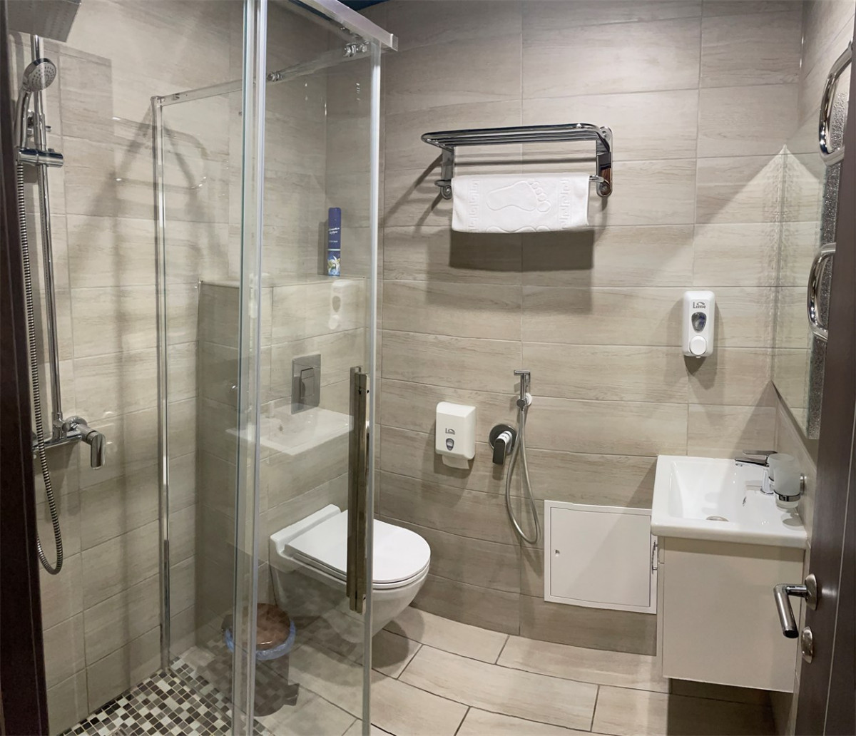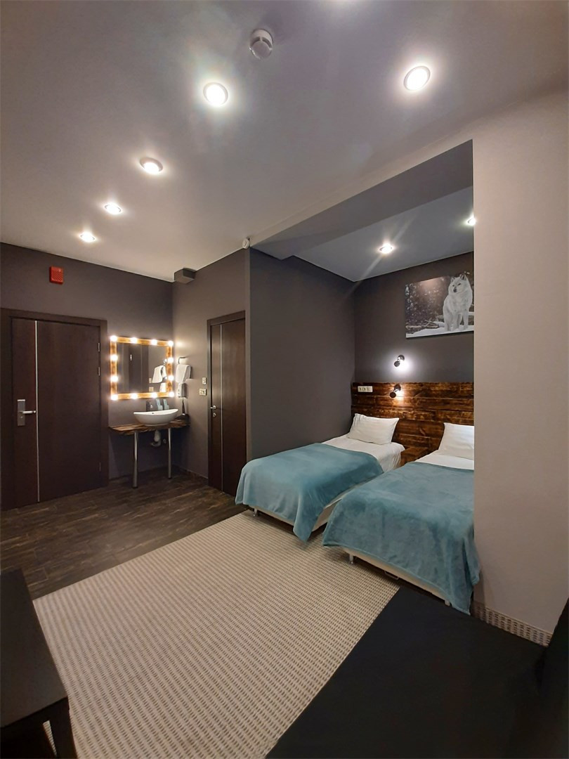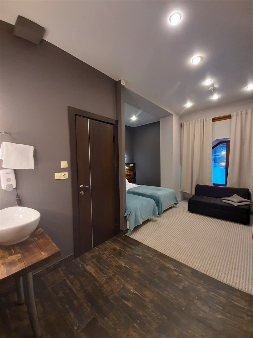 Улучшенный Комфорт (20 кв. м, 2 раздельные кровати, санузел с душевой кабиной, раскладной диван, который при необходимости трансформируется в доп. спальное место, телевизор с плоским экраном, тапочки, банные принадлежности, чайник, макс. 3 чел.),
