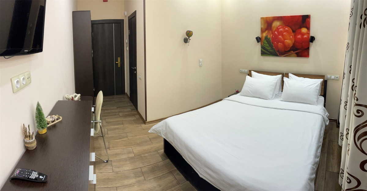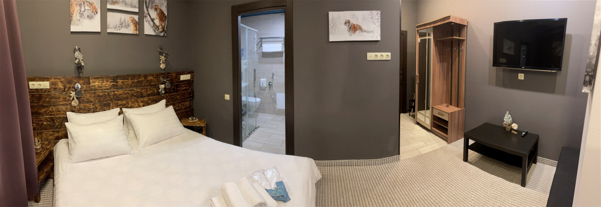 Комфорт (18 кв. м, просторный номер с большой двуспальной кроватью, санузел с душевой кабиной, телевизор с плоским экраном, тапочки, банные принадлежности, макс. 2 чел.),
