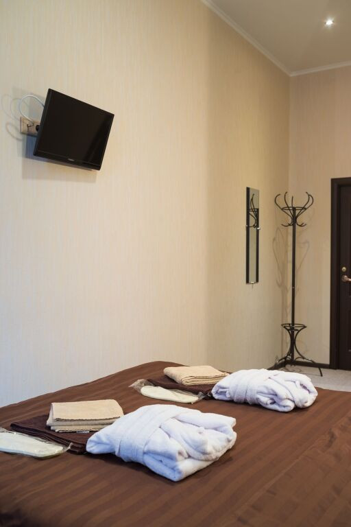 СТАНДАРТ С ДВУСПАЛЬНОЙ КРОВАТЬЮ (номер с удобствами) — Площадь номера: от 12 кв. м. Вид из номера: во двор. Количество комнат: 1. Тип кроватей (основные места): двуспальная. Комментарии: в номере: двуспальная кровать, шкаф для одежды, стул, зеркало, прикроватные светильники, телевизор. Удобства (душ, туалет и раковина) находятся в номере,