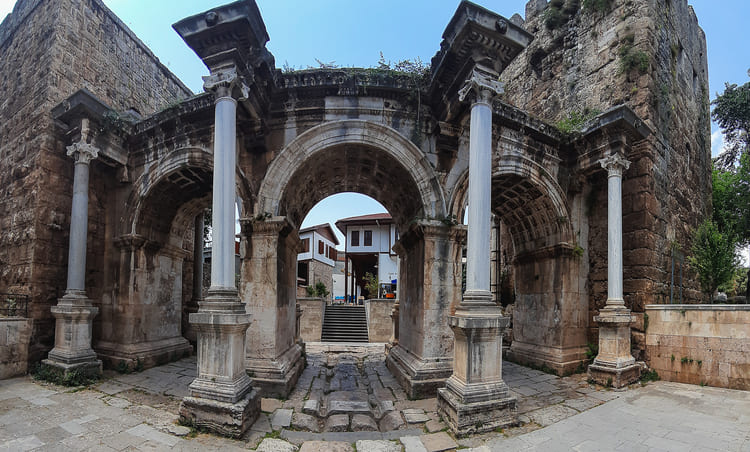 Ворота Адриана, построенные в честь посетившего Анталью в 130 году римского императора, и возведенная во II веке башня Хыдырлык, откуда открывается превосходный вид на гавань, напоминают о том периоде, когда город был важным портом Римской империи.