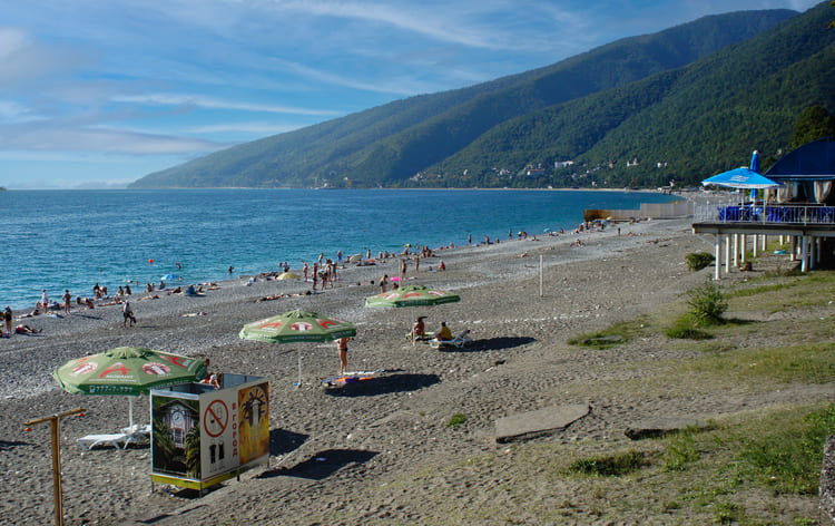 Пляжи Гудауты – галечные или песчано-галечные, довольно широкие. При том, что сам город совсем не большой и сюда едет пока не так много туристов, на пляже можно отдыхать очень комфортно, толпы народа здесь не бывает.