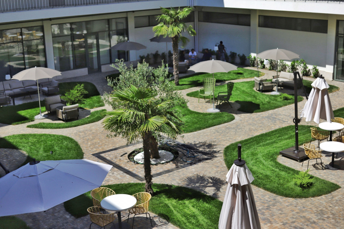 Двухместный люкс —номер с двуспальной или 2 односпальными кроватями, раскладным диваном, санузлом с душем, балконом, вид на парк с озером, горы/море, макс. 4 чел.,