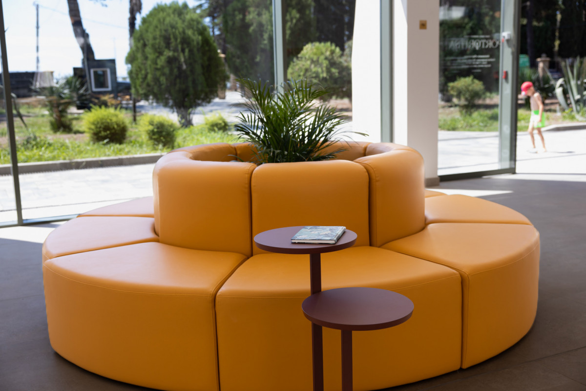 5) Люкс c балконом — 40 кв. м. В номере: двуспальная кровать или две раздельные, мягкие кресла, стул, стол, настенное зеркало, шкаф,