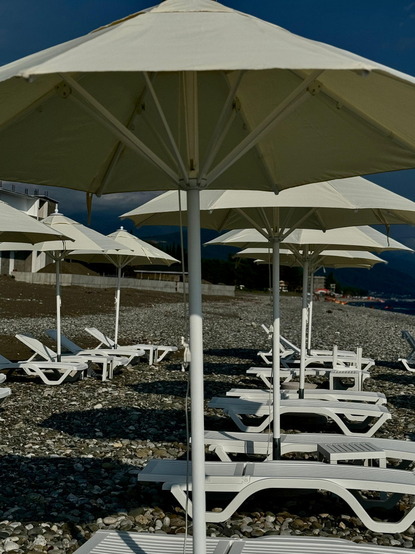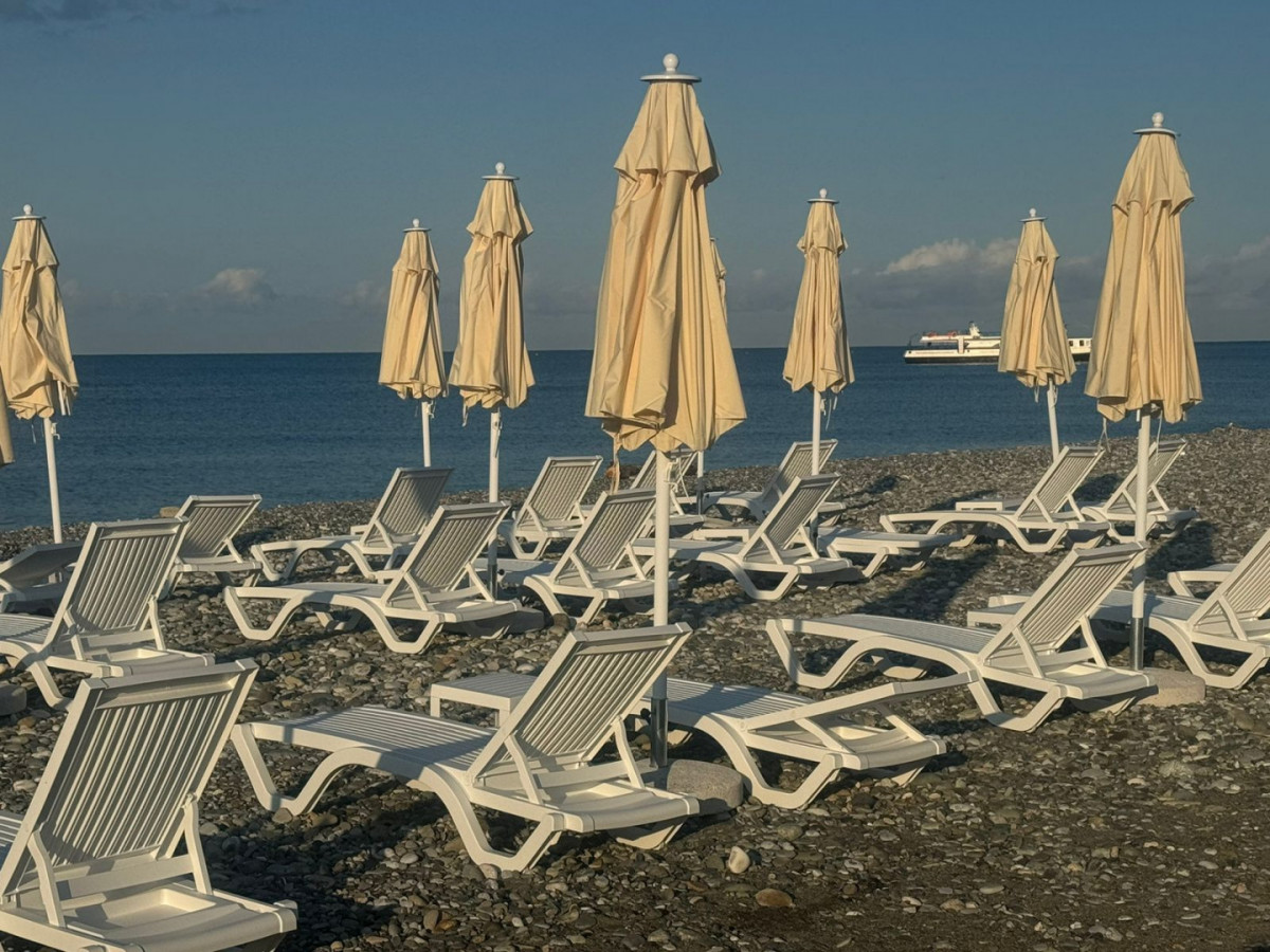 оборудованный (раздевалки, душевые кабины, шезлонги, зонты)