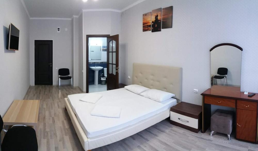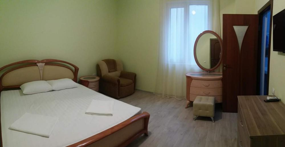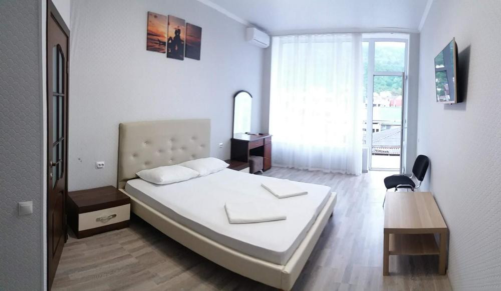 2-местн. 1-комн. Апартаменты: 70 кв. м. Номер на 3 этаже: с/у, душ, телевизор, кондиционер, двуспальная кровать, две террасы, мини-кухня. Предусмотрено 2 доп места – диван,